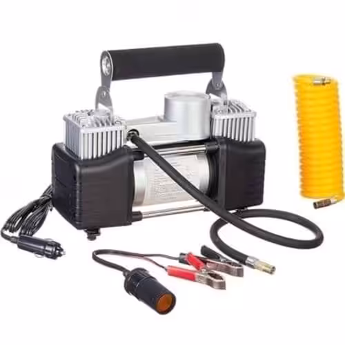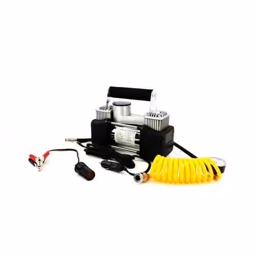 ماطور هواء قوي وفعّال بسطحين (بستمين) لضغط أسرع وأداء متوازن، مثالي لنفخ إطارات السيارات والدراجات والمستلزمات الهوائية المختلفة. تصميم متين وعملي يضمن أداءً موثوقًا في المنزل، السيارة، والرحلات.