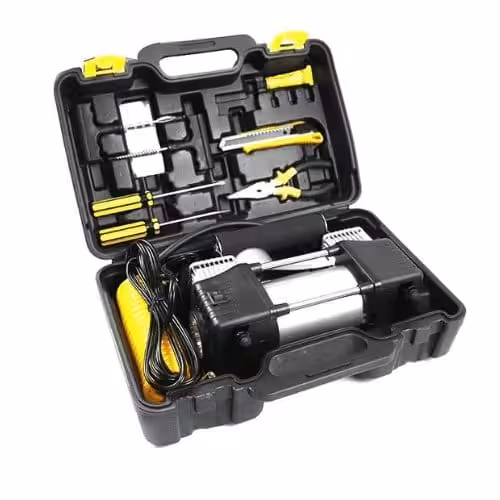 ماطور هواء احترافي مع عدة متكاملة، ضغط حتى 150 PSI، مثالي لنفخ الإطارات والمعدات، متين وسهل الاستخدام للسيارات والورش.